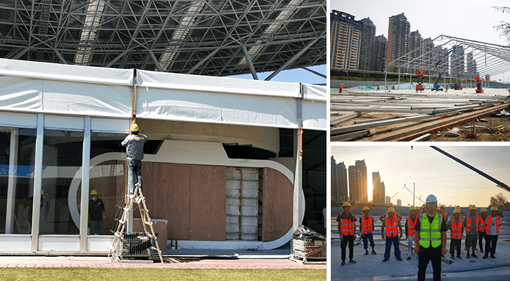 體育館篷房采用模塊化設計,跨度3米至80米,長度可模塊化伸縮。可以看出,該體育館篷房具有更加人性化的尺寸設計,幾乎可以滿足任何類型運動場地的需求。